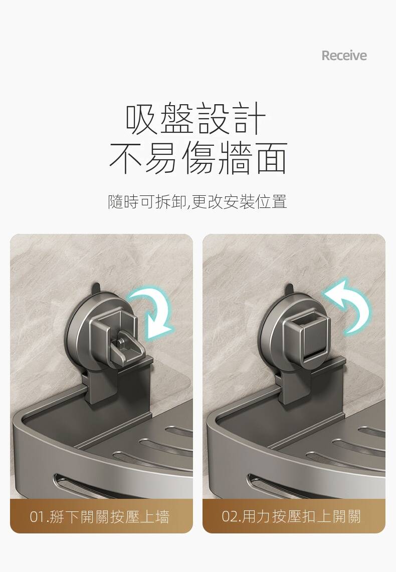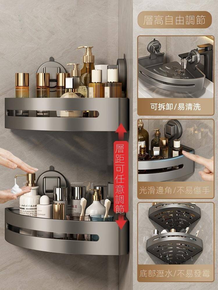 半小時前自帶吸盤,可隨時移動重復使用的置物架 免打孔廚房浴室衛生間三角置物架多用途壁掛收納架毛巾架 - 【超夯下殺】買一送二,共三入組 NT$998
